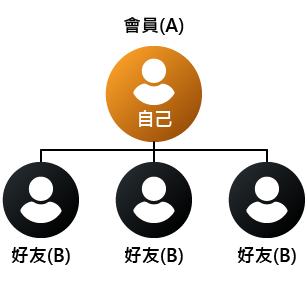 若是你的好友也加入這個計畫,好友將可以得到他第一層所有好友 "千分之一" 投注回饋金。